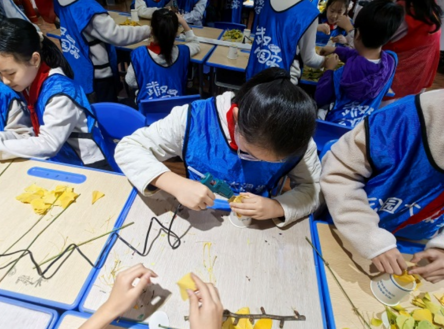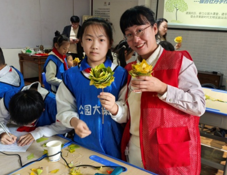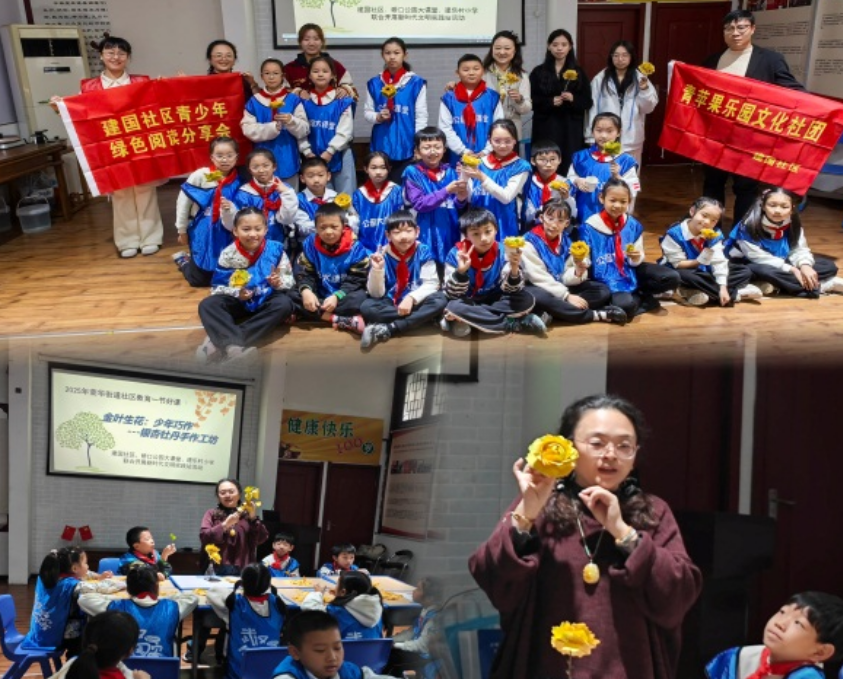 为丰富青少年周末课余生活,传承自然与手工文化,2025年11月14日上午,荣华街道建国社区、硚口公园大课堂、建乐村小学在硚口公园、尚和书院联合开展“金叶生花,少年巧作——银杏牡丹手作工坊”荣华街道社区教育一节好课活动,建乐村小学的同学们在自然探索与动手实践中收获满满。