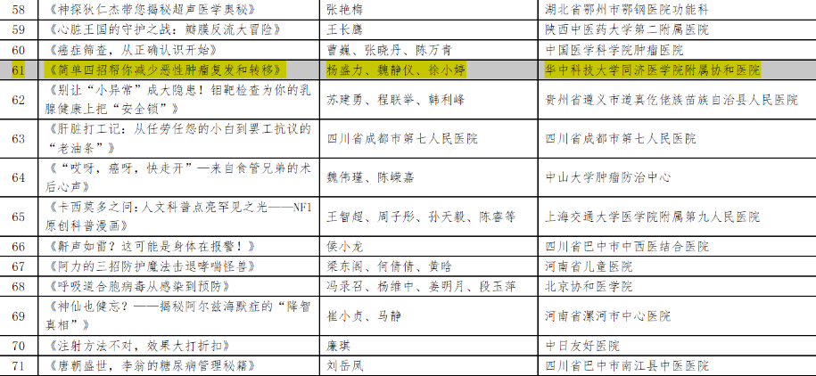 值得一提的是,该作品早已凭借优质内容获得广泛认可。2022年,该作品被《健康报》刊登,随后被“健康中国”等数百个权威平台转载传播,惠及海量民众;此前,它还曾斩获2024年度“科普中国青年之星创作交流活动”优秀作品奖和湖北省抗癌协会首届科普大赛二等奖,多次获奖彰显了业界对该作品科普实力的高度肯定。