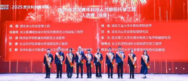 活动现场,与会领导为35名入选2025年武汉青年科技人才朝阳托举工程的优秀青年科技人才颁发证书。这些优秀青年科技人才平均年龄仅31岁,研究方向覆盖人工智能、芯片科技、生物医药、智能制造等武汉重点发展领域,成为武汉科技创新的“生力军”。