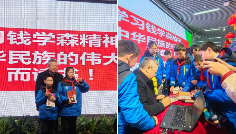 活动尾声,当大屏幕上钱老以“数字人”与大家见面时,带给现场观众直击心灵的感动。他们将这位科学大师的谆谆教诲牢记在心中。互动环节,现场观众抓住难得的机会与顾吉环面对面交流,同时表达了对科学巨匠的诚挚敬意。幸运观众获得了由钱学森图书馆馆长、钱学森之子钱永刚精心编著的《听馆长讲钱学森故事》,将这份精神财富带回家中。