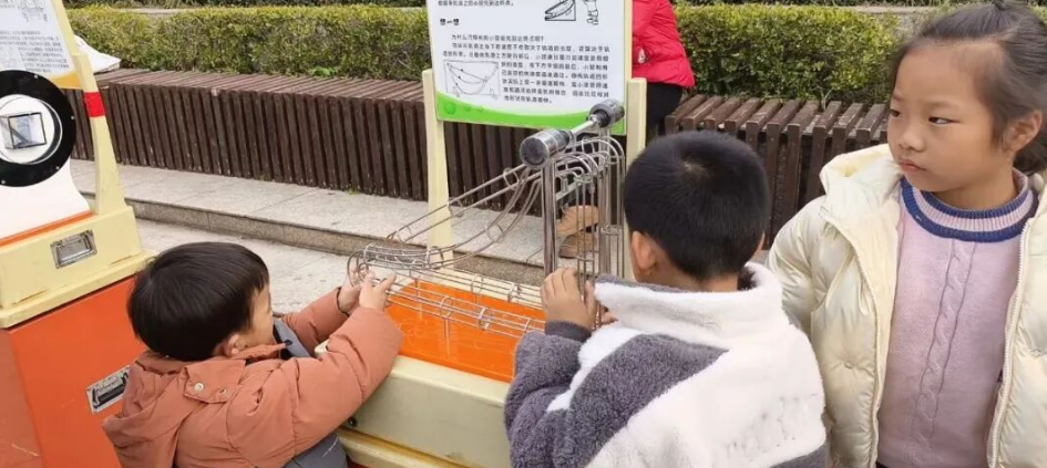 活动现场,广场东侧的科普体验区成了孩子们的乐园。市科技馆安排的科普大篷车带来了针幕、翻转镜像、最速降线、看谁跑得快、懒惰环等十件互动式科普展品,迅速成为“人气王”。孩子们在“看谁跑得快”展台前,亲手释放小球,发现弯曲轨道上的小球竟先到达终点,惊讶不已;在“懒惰环”装置前,他们瞪大眼睛,看着一个金属环缓缓下滑,而另一个却“卡”在轨道上,连连惊呼。