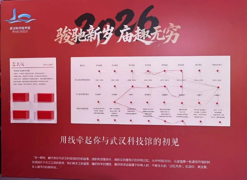 武汉科技馆首次设置的“时光结”游戏更是吸引大批外地游客参与。展板上,不同颜色的丝线串联起参与者的居住地、初次来武汉科技馆的时间、最喜欢的展厅以及对武汉科技馆的寄语。记者发现,当天有来自东北、西北、华北、华东、华中、华南等地区的游客到此一游,有的外地游客几年前就来过武汉科技馆。