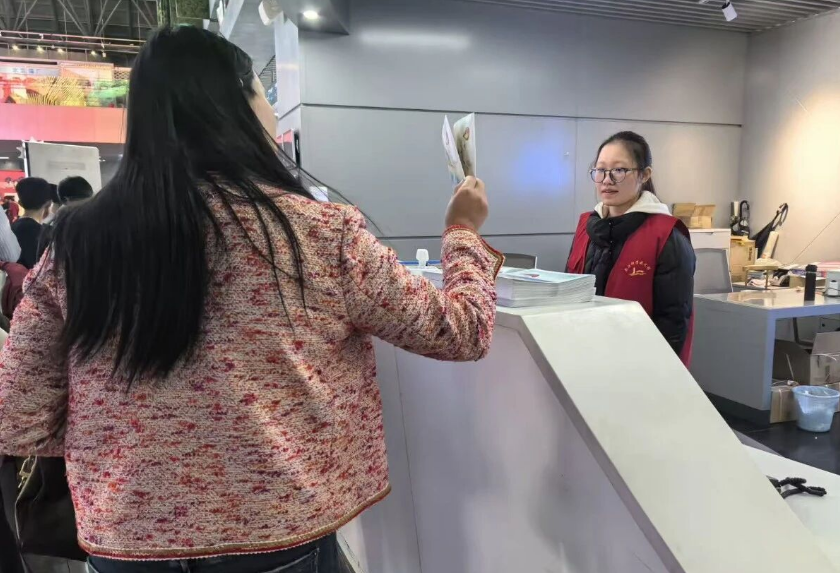 大学生志愿者韩思颖为市民游客提供咨询服务。记者万凌 摄