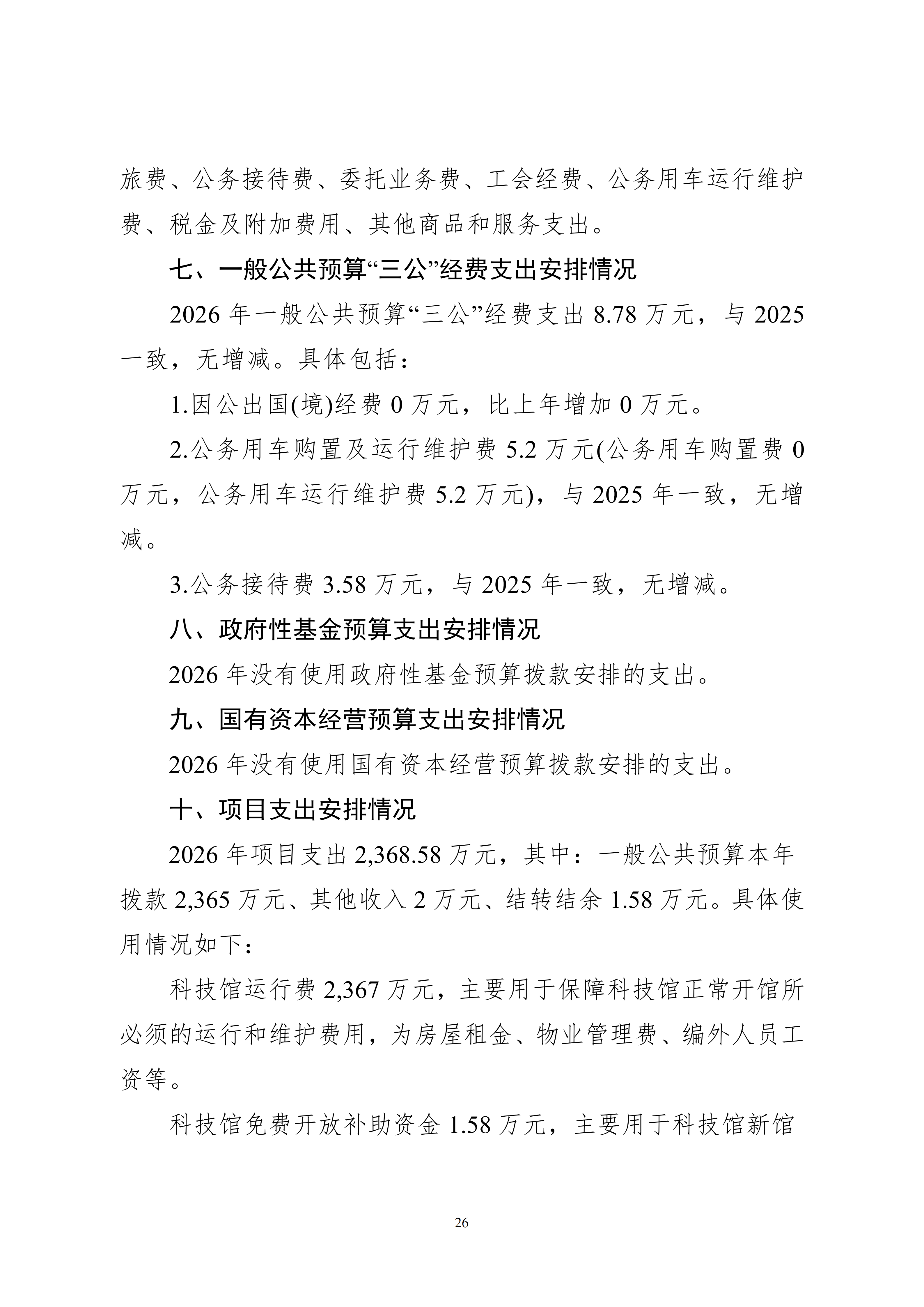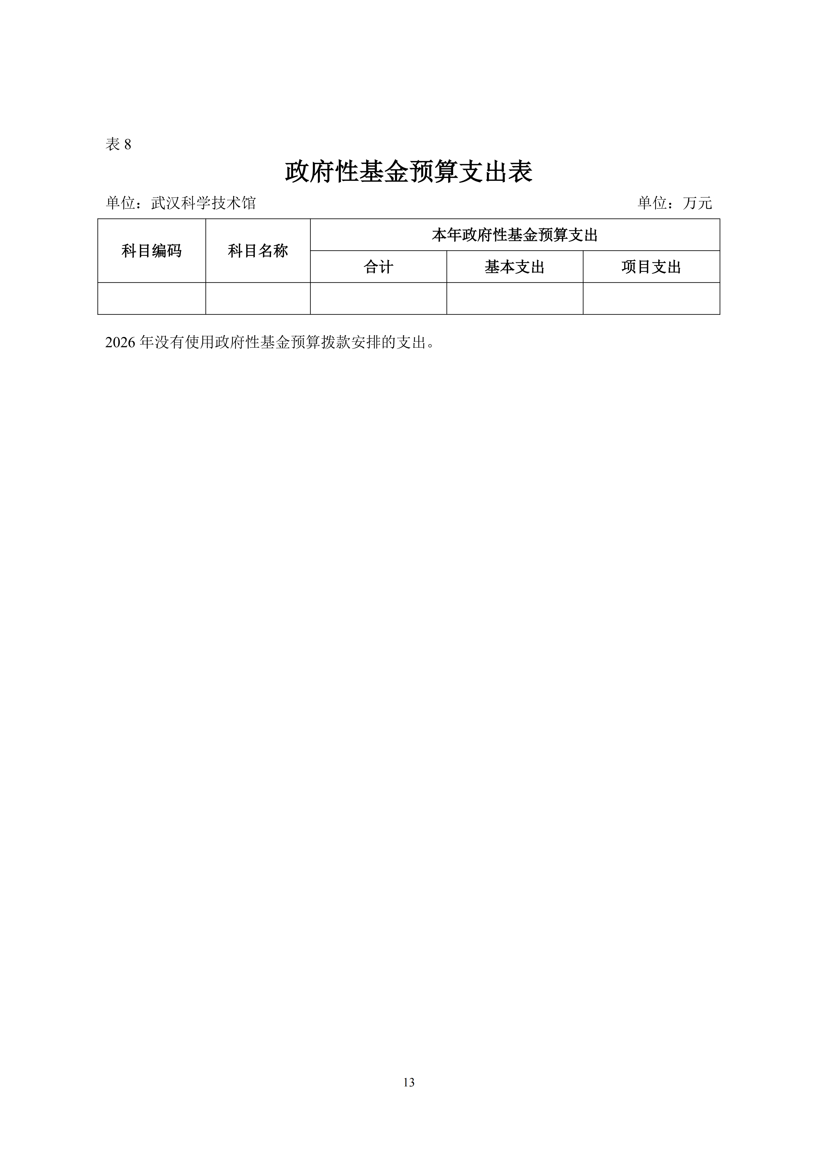 武汉科学技术馆2026年单位预算