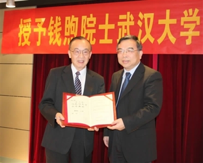 在近日召开的第三届中法生物医学工程学术研讨会上,美国“四院院士”钱煦受聘为武汉大学名誉教授,武大校长顾海良为其颁发名誉教授证书。