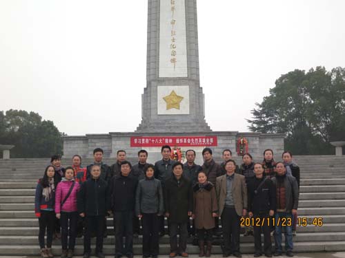 市科协网讯    1123,市科协党组书记、主席卢光发率领机关全体党员干部职工赴革命老区黄冈开展了“学习贯彻十八大精神,缅怀革命先烈光辉业绩”主题教育活动。