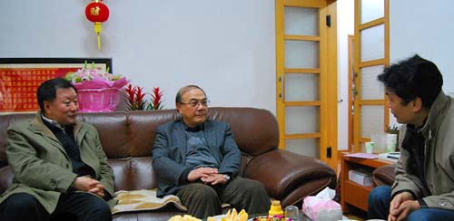 武汉市副市长邢早忠一行看望慰问中国工程院院士刘经南。图为在刘院士家中,邢早忠副市长(左一)与刘经南院士(左二)、市科协主席卢光发(右一)亲切交谈