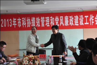 市科协网讯 4月8日上午,2013年市科协绩效管理和党风廉政建设工作会议在武汉科技馆召开。会议总结了2012年绩效管理工作,签订了2013年绩效管理和党风廉政建设责任书。会议由市科协副主席杨军主持。各区科协主席,市科协机关各部室、直属事业单位负责人参加了会议。