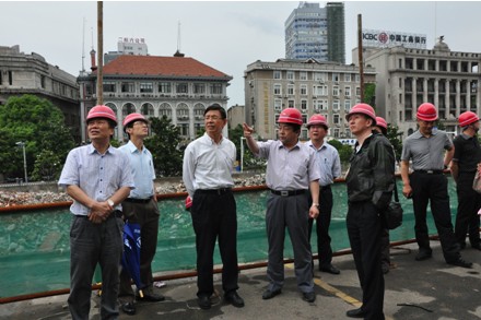 随后,调研组一行考察了武汉科技馆新馆建设工地的施工情况。市科协副主席陈光勇现场简要汇报了新馆的建设情况。