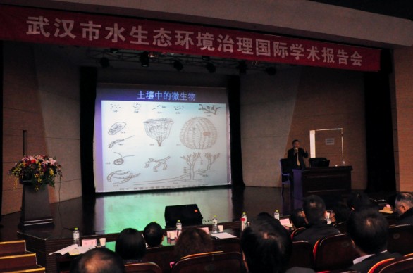 曲久辉院士的报告从污染源的控制和数据修复以及如何保障健康的城市水循环等方面分析了构建和管理一个可持续的水环境。他指出,水循环当中最重要的环节是水资源的开发和利用,武汉作为湖泊等湿地资源丰富的城市,不能仅仅把湿地作为水处理的工具,而应该作为一种保护的对象,从而将地下水的补充、污水的再生利用以及湿地保护等进行综合考虑来构建健康循环的城市水生态系统。