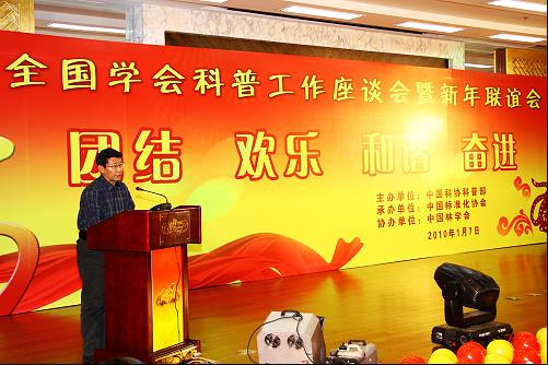 2010年1月7日,全国学会科普工作座谈会暨新年联谊会在北京召开。中国科协办公厅、科普部、学会部、机关工会等部门和有关事业单位的领导,与全国学会的领导、各学会科普工作的负责同志约150余人,一起回顾和交流了2009年的学会科普工作。中国科协科普部副部长殷皓主持座谈会。