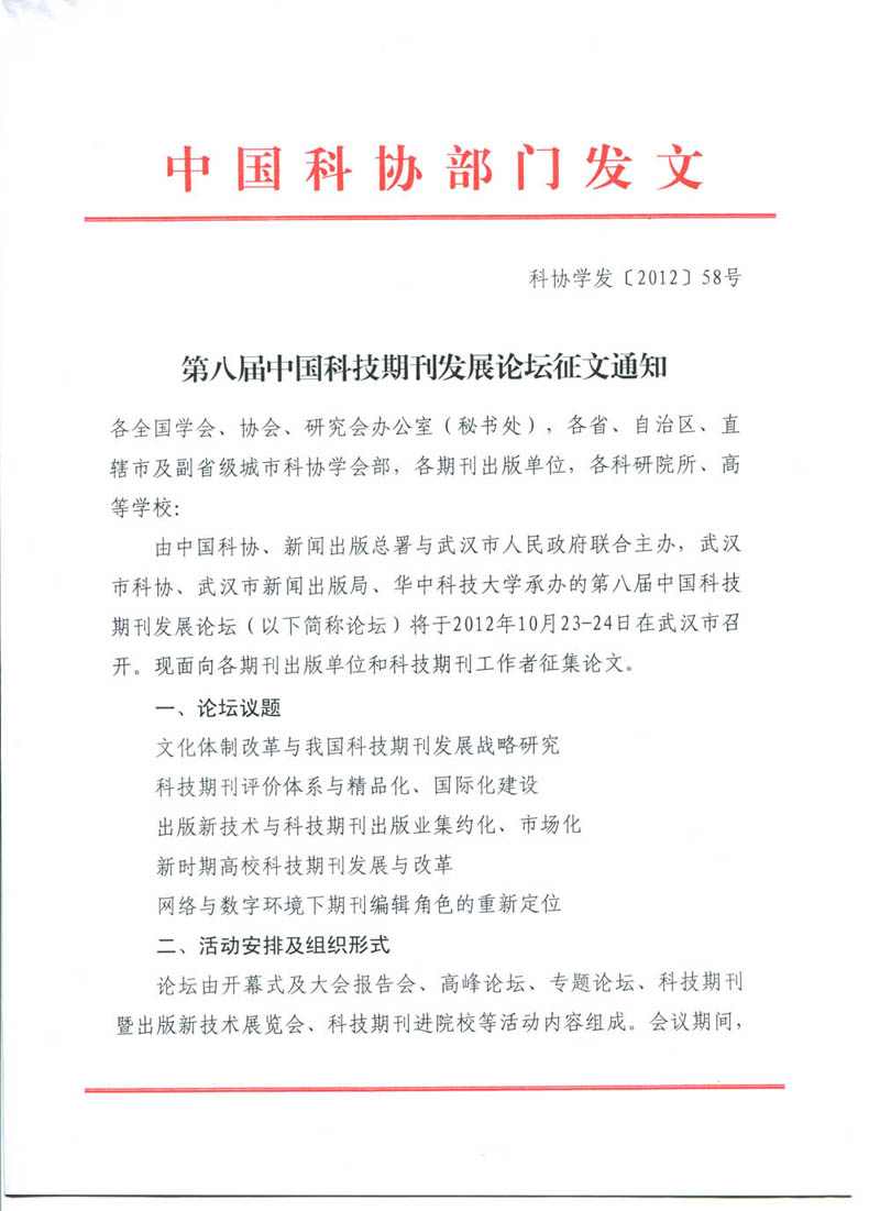 附件一:第八届中国科技期刊发展论坛征文要求.doc