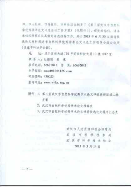附加一:第三届武汉市自然科学优秀学术论文评选表彰活动方案