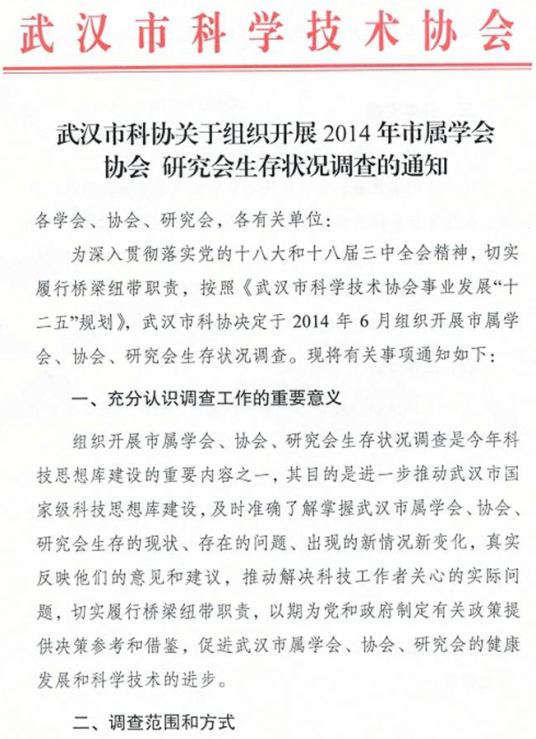 关于组织开展2014年市属学会 、协会、研究会生存状况调查的通知