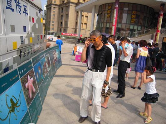 2010年6月27日,江岸区科普进社区服务日在二七街航天商城广场前如期与市民见面。由江岸区政务中心管理委员会办公室主办,区科协、区国税局、地税局、国土规划局、食品药品监管局、工商分局、区房产局、区民政局、区文体旅游局、人计委、二七办事处、新村街办事处为协办单位的社区服务日,受到了社区居民的一致好评。区科协、市科技馆的科普大蓬车相继在活动广场一字排开为市民展示的科普大餐——3D科普展板,倍受市民喜爱,市民戴上专用眼镜观看3D科普展板,尤如在电影院观看3D电影的感受一样,科普展板的立体图像使自己身临其境、变幻莫测,感受益于言表。这种立体科普展板第一次与市民见面,大家争先恐后领取专用眼镜观看,现场十分热烈。市科技馆在现场摆放科普展品,不论小孩、中老年人都参与其中动手动脑、开发智力,探求奥秘,把这次社区服务日科普展区的活动推向了高潮。