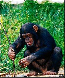 据英国媒体报道,研究人员发现,黑猩猩通过观看录像演示,可以学会制造工具。在实验中,研究人员给黑猩猩们演示一段录像,在录像中,一只训练有素的猩猩把两部分工具组成一个工具,用这个工具够取食品。