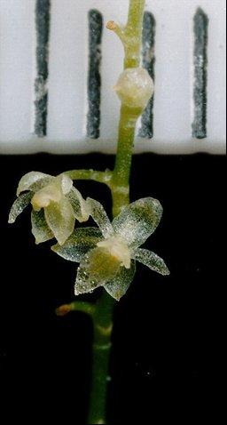 这种超微型兰花花朵直径仅2.1毫米,花瓣仅有一个细胞厚,呈透明淡黄色。它暂时被归为“扁轴兰花属”。这个属中的兰花大部分植株很小。