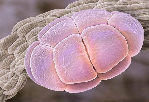 勿忘我花瓣中的花粉颗粒。这些颗粒的直径只有0.006毫米,属于最小的那种。