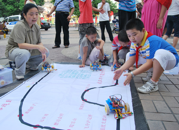 武汉关小学的同学们进行机器人表演