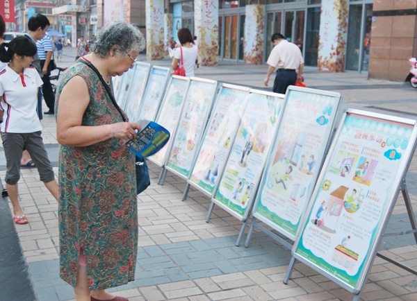 生活科普知识展板吸引不少市民驻足观看