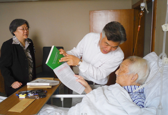 最后,卢光发一行来到华科大同济医院方秦汉院士的病榻前,看望慰问方秦汉院士。方秦汉院士是桥梁工程钢结构专家,今年已是89岁高龄,仍思维清晰,关心武汉的发展。当卢光发将《武汉2049》和《武汉2049远景发展战略规划院士专家咨询座谈会文集》送到方秦汉院士手中时,他表示将认真拜读,卢光发也祝他早日恢复健康。