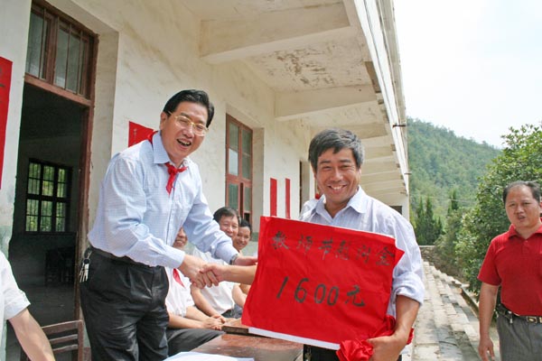 两校200多名师生、镇有关部门负责人、三个村的村干部、村界内的民营企业主分别参加了两校教师节庆祝会。扶贫单位的领导代表,分别在会上发表了热情洋溢的讲话。他们说:我们要把教育放在基础的地位,进一步深化教育体制改革,大力推进素质教育。希望镇有关部门、三村党支部村委会、三村地界内的企业主继续多给学校一些支持,多给师生一些关爱。希望老师继续发扬艰苦奋斗、淡薄名利的好传统,敬业爱岗,培养更多的有社会主义觉悟、有文化的劳动者。希望广大农家子弟发愤读书,贡献社会,回报人民,不负家乡父老乡亲、老师及关心他们的领导、同志们的殷切期望。