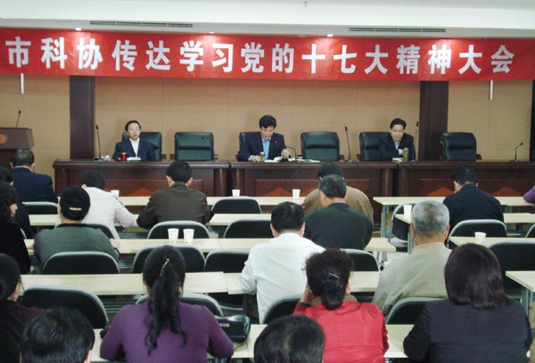 会上,市科协党组书记、主席卢光发就党的十七大会议概况、十七大报告的主要精神、中央纪委工作报告主要精神和关于修改党章的主要情况等内容进行了传达。