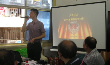 教官用投影的方式把火灾现场图片、生动的案例从各方面进行了详细讲解:一、从日常生活中的火灾隐患加强学习消防知识的必要性; (如以提问的方式火灾发生时人是往上走还是往下走等系列问题,居民踊跃回答)二、如何掌握使用灭火器的方法及其性能; 三、火灾现场自救逃生的技能和扑救初期火灾的时机和方法。