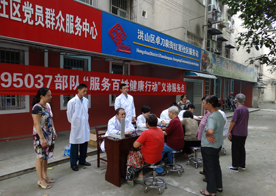 为深入开展党的群众路线教育实践活动,建设人民满意的医疗体系,扎实开展志愿服务,切实提高人民群众的健康水平,9月17日上午9点卓刀泉街红星社区联合95037部队军医开展“服务百姓,健康行动”义诊活动。