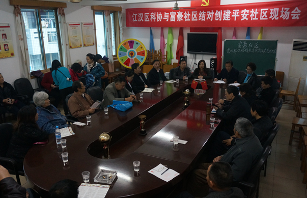 为深入推进平安江汉建设,努力提升全区“一感两度两率”,江汉区科协与常青街富豪社区结对创建平安社区现场会于11月5日上午在富豪社区会议室召开,区科协主席乔秀枝、副主席胡耀源、徐子聪、社区书记、主任、门栋长、党员小组长和物业公司负责人近30人参加了会议。