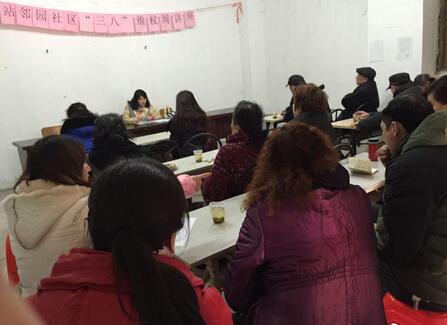 2015年是“三八”国际劳动妇女节105周年,为深入贯彻党的十八大四中全会精神,进一步深化建设社会主义法治国家,依法治国。3月5日这天,硚口区宝丰街站邻园社区就“三八”妇女节的气息,在社区家长学校开展了“三八”维权活动周法律进社区知识讲座。社区妇联特别邀请了湖北法正联合律师事务所李律师为社区妇女讲解妇女维权法律知识和物权法的相关内容。