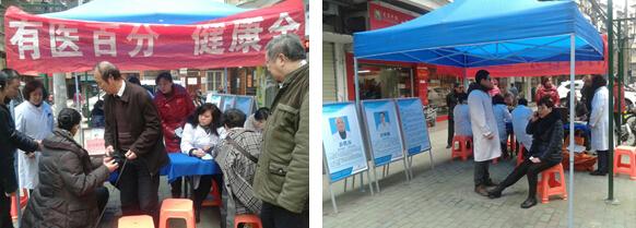 2015年3月11,硚口区宝丰街祥和社区科普站邀请武汉市阳光中西医结合医院骨伤科、肝病科、肾病科、心脑血管、妇科、中医推拿科十余位专家,在祥和公寓门前广场举行了大型义诊活动。