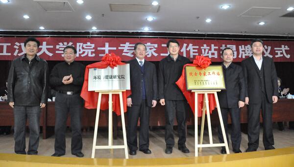 江汉大学副校长桑建平、涂文学及20余位国内外知名环境与健康领域的专家学者出席揭牌仪式。仪式后,领导和与会嘉宾考察了江汉大学院士专家工作站、环境与健康研究院。