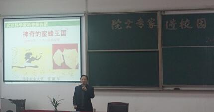 在一个半小时里,张教授用风趣幽默、简洁易懂的语言讲述了地球、人类、蜜蜂相处相融的历史;蜜蜂构造、习性、生活环境;蜜蜂对人类的贡献及相关趣事,报告厅里不时传来同学们欢快的笑声。张教授的随机提问、互动,并没有难倒我们的学生,从同学们的对答如流中可以看到同学们对蜜蜂的喜爱和熟悉。张教授全面、准确的科学讲解更加深了同学们对蜜蜂的认识,引起了同学们对蜜蜂的深厚兴趣。