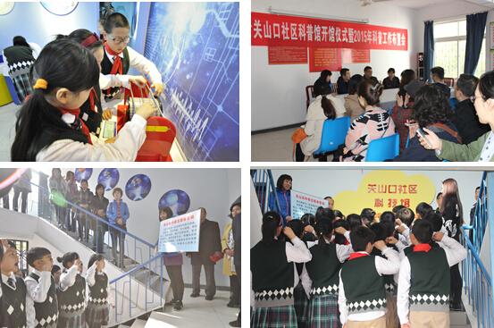 2015年3月27日上午,关山街科协在关山口社区举行了--关山街关山口社区科技馆开馆揭牌仪式暨2015年科普工作布置会。洪山区科协董主席、丁副主席、街工委苏书记、戚副主任共同为关山口社区科技馆进行了揭牌。来自关山街27个社区的科普员、主任和光谷四小的40名青少年参加了揭牌仪式活动。