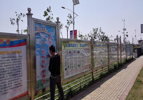 为了加强科普宣传力度,增强广大群众爱科学、学科学、用科学的意识,从而提高全民科学素质,街道研究决定升级全街8个村和1个社区的科科普宣传栏。目前东湖街的宣传栏已改造升级完成。宣传栏全部采用不锈钢制作,规格为2米*4米,全长50米。宣传的内容都与群众的生产生活息息相关,涉及有渔业养殖及病虫防治、农业生产、苗木花卉水果知识介绍、食品药品安全、交通道路及乘车安全、清洁能源介绍、用水用电安全、防火防盗、地震逃生等。