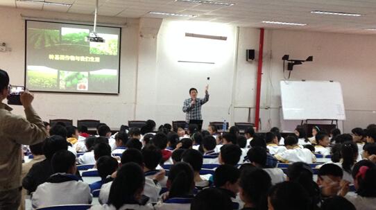 是日下午三时三十分许,和中七、八两个年级300余名师生汇聚在该校报告厅,聆听来自华中农业大学生命科学技术学院副教授陈浩博士所做的题为《转基因作物与我们生活》的报告。陈博士是华农作物遗传改良国家重点实验室研究人员及国家农业生命科学技术科普基地成员。在他的讲座中,陈教授重点向学子们介绍了基因的概念、如何实现转基因、转基因作物的应用现状、代表性转基因作物的介绍和转基因作物的安全评价等5个方面,其中对转基因作物黄金大米和富Omega-3的转基因大豆的讲解让师生了解到均衡营养的重要性。