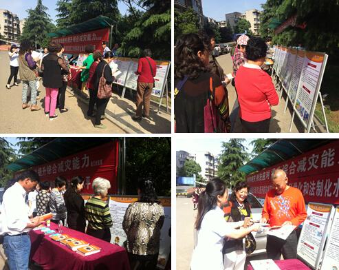 活动现场分别悬挂标语、摆放展板、设立咨询台、散发宣传资料,结合实际,进行防震减灾宣传活动。此次宣传活动形式多样、内容丰富多彩,防震减灾进社区活动,坚持“减灾从社区做起”,向现场居民散发防震减灾知识宣传手册等宣传材料。