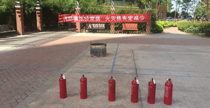 灭火器的知识讲解;二是演练活动以现场模拟演练的方式展开,参加演练人员通过使用灭火器灭火,亲自体验了一次灭火的全过程。
