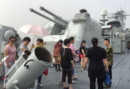 5月19日上午9点,街道科普志愿者一行30人,首先来到硚口区军事科普教育基地——海军工程大学汉口江滩训练基地,在基地老师的带领下和讲解,志愿者们先后参观了我国自行研发的106护卫舰、301潜水艇,深入腹地地了解舰、艇的内部构造、功能,了解军人有限的作息空间,大家纷纷感叹军人不易,强军不易,只有强军强国,我们才有幸福的生活,我们领土才能神圣不可侵犯!