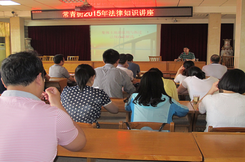 6月4日上午,常青街法律事务所、街科协特邀武汉市普法讲师团李德安老师在街办事处四楼多功能会议室举办了题为“集体土地的征用与拆迁”法规政策专题讲座。街机关工作人员、各社区书记主任、治保主任、科普站站长等共计50余人参加了听讲。报告会主要从集体土地征用程序、集体土地拆迁补偿的相关规定、违章建筑的认定与处理三个方面进行了详细介绍。整个报告会历时2个多小时,内容充实,针对性强,充分结合常青街地处城乡结合部、地域改造拆迁多等实际情况,对街道机关工作人员和社区群干在今后现实工作中有很强的指导意义。报告会结束后,与会人员纷纷表示:李老师的讲座丰富了大家的相关法律知识,拓宽了工作视野,有利于更好的开展工作。