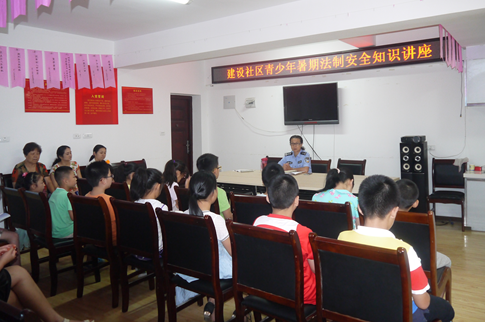 在暑假来临之际,为确保孩子们安全度夏,北湖街建设社区邀请管段户籍马兰警官对辖区内放假同学及家长集中进行了暑期安全知识教育。在讲座中,马警官从交通安全、防火防盗、防拐骗、防摔倒跌伤等方面为大家进行了讲解,内容丰富多彩,贴近青少年实际,使家长和同学们深受教育。