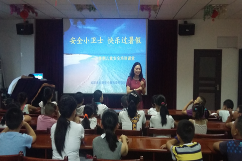 为加强对孩子们暑假安全教育,7月16日,武汉市妇女儿童活动中心的李老师来到了扬子社区“小时候HAPPY HOUSE ”暑期日间托管班,为孩子们上了一堂生动的安全知识课。