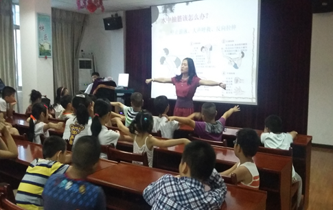 李老师通过举实例、做示范的方式为孩子们讲解了暑期易发的各种意外事故,着重讲解了如何预防溺水事件、溺水后如何应对、自救,并通过现场互动和抢答来巩固孩子们所学到的知识。