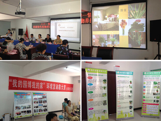 李博士从居民实际需要出发,用图文并茂的PPT,从家庭种植的意义、家庭适合种植的植物,不同家庭空间适种的植物推荐、栽培植物的功效、常见植物如何养护、家庭盆景的种植六个方面的养护管理进行了详尽的讲解,并就课堂现场绿色植物进行了相关点评。