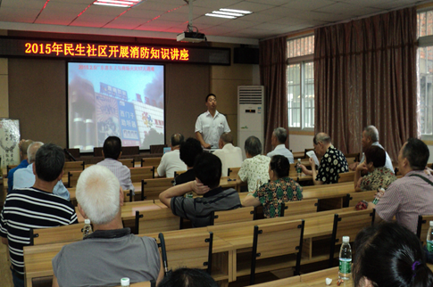 8月17日上午,民权街民生社区组织社区居民开展了消防安全知识讲座。消防大队的张久林教官结合火灾案例,从火灾的危害、原因到预防,较为全面地为大家讲解了消防安全知识,帮助大家明确了消防预防的重点,掌握了火灾预防的常识,增强了消防安全的意识。