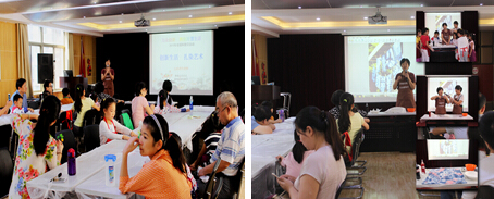 活动开始,由舒丹老师带领大家揭开扎染的神秘面纱。为大家详细讲解扎染的起源、如何挑选扎染所需要的道具、扎染的扎技方法有哪些、如何制作漂亮的扎染作品、扎染在渲染的时候要注意的哪些事项、现实生活中人们是如何运用扎染艺术……舒老师现场制作了一个扎染作品展示给大家学习,并启发小朋友自己开动脑筋和家长们一起动手制作。在舒老师的精心指导下,大家兴致勃勃地忙碌起来。经过2小时的激情奋战,各式各样漂亮的扎染作品终于出炉了!孩子们个个乐开了花,心中的成就感“瞬间”提升!家长们也表示获益匪浅,希望今后能多多举办这样类型的活动。