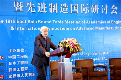 11月2日-3日,第18届中日韩工程院圆桌会议在武汉举行,来自三国工程科技领域的院士专家,围绕“先进制造”这一主题,从“先进制造业发展趋势”、“智能制造技术的发展及应用”、“绿色制造、智能制造中的低碳和节能减排”、“服务型制造”等四个议题展开交流,掀起了“头脑风暴”,并为“武汉制造2025”献计献策。