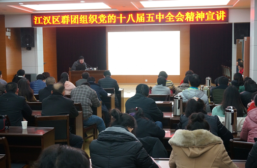 12月10日下午,江汉区科协联合区总工会、团区委、区妇联、区工商联等群团组织在区总工会会议室举办了党的十八届五中全会精神辅导报告会,科协全体干部职工参加。