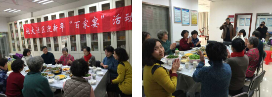 我社区通过举办百家宴,把邻里请出家门,为他们搭建一个相识、相知、交流的平台。不但和谐了邻里关系,而且还丰富了他们的精神文化生活。浓郁的邻里亲情油然而生,到处都是洋溢着新年到来的景象。